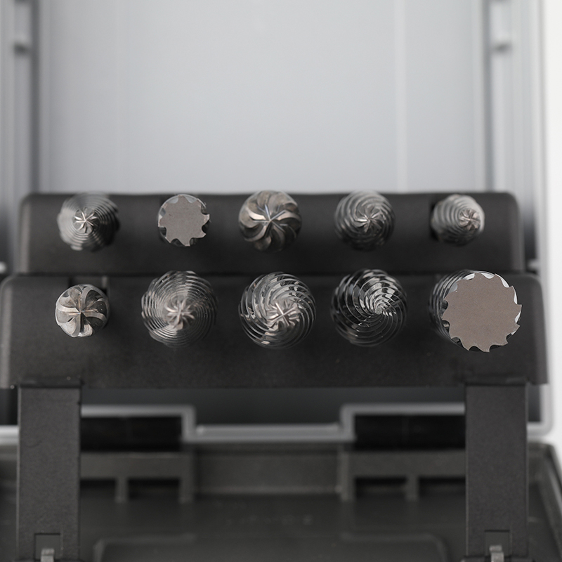 備注:10支6mm柄鑄鐵齒常用型號組合搭配; 適用于鋁合金表面輪廓加工應用; 德國Rose塑盒包裝保護刃口,便于取放及收納